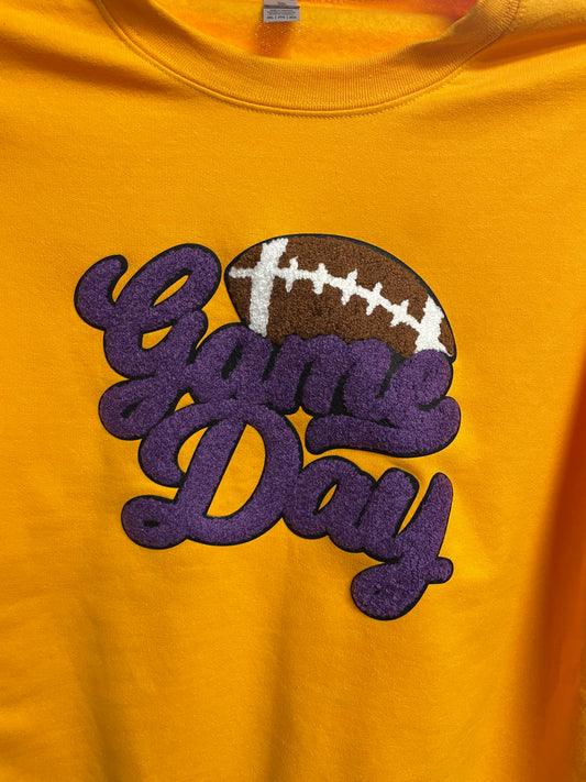 Purple Game Day Chenille Yelow Sweatshirt (upper right corner!)